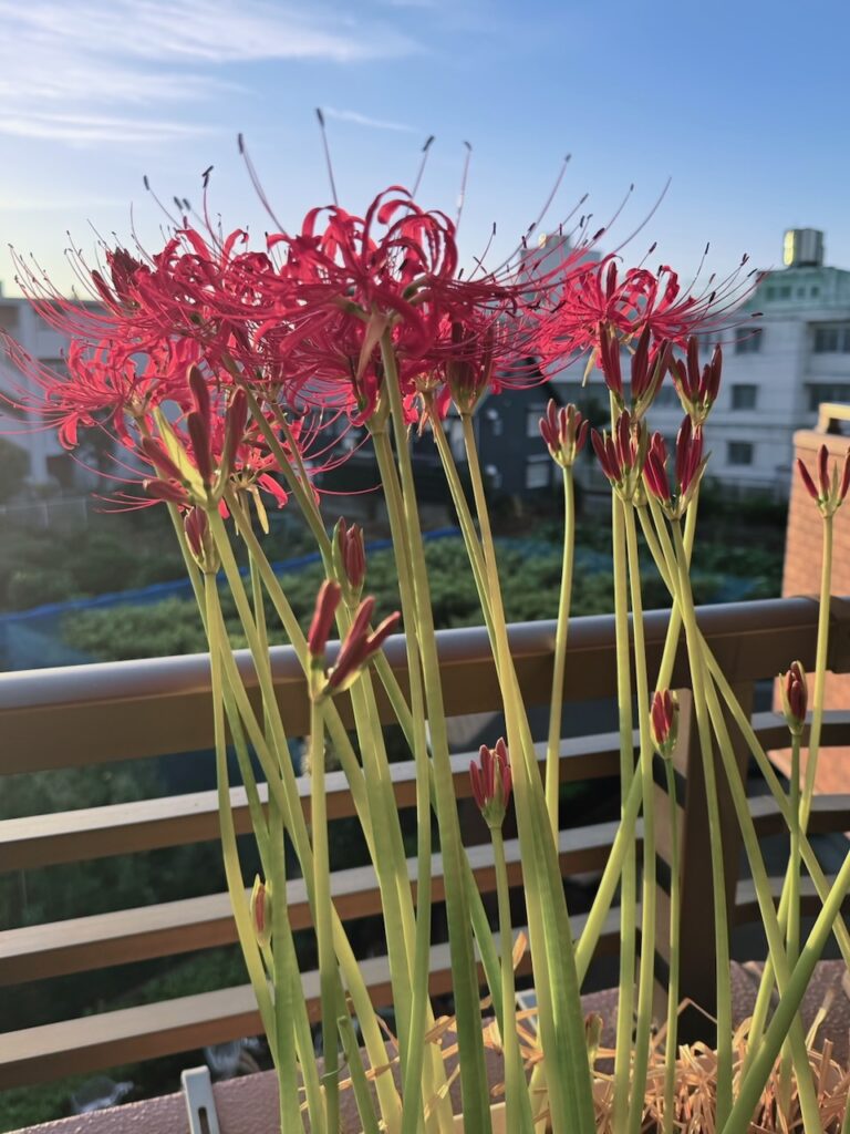 ベランダの彼岸花が満開です 投稿者: いいぬまてつや | 2025年9月27日 0件のコメント 今年は花咲くのかなのかと心配になっていましたが、9月後半になってちょっと涼しくなってきたら一気に花芽が伸びてきて今週は満開状態です。 このプランターは3,4年目なのかな? 球根植えた年は花は咲かず、2年目2本、3年目数本ととだんだん花が増えてきて今はこの状態。 プランターが心なし膨らみ始めているのでたぶん根が詰まってきているかも知れません。 植え替え考えないいけないかな。 共有:投稿