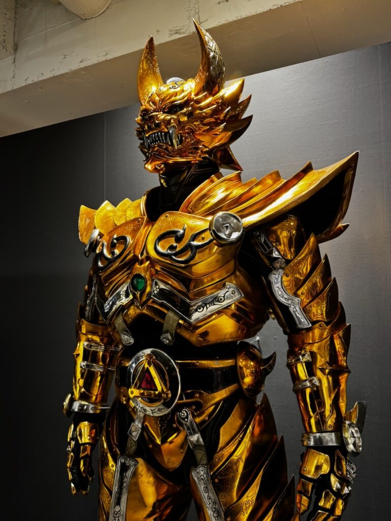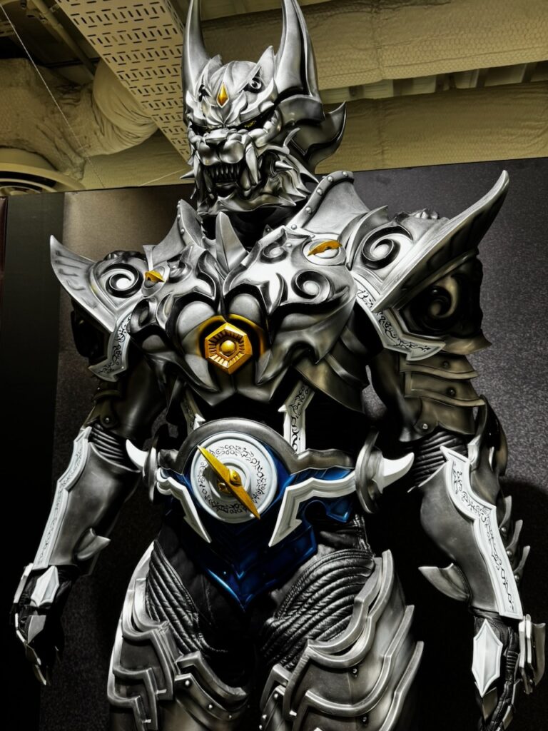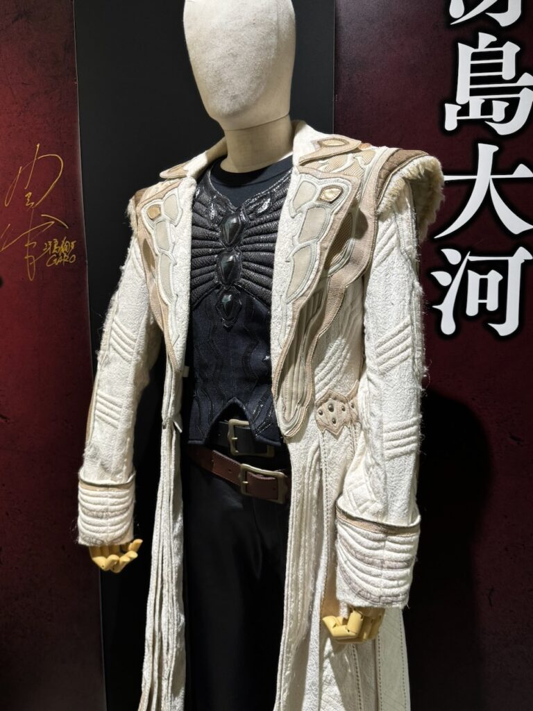 衣装の方は、鋼牙のコートとかは革だとばかり思ってましたが、実物は革じゃなくてファブリック。 それも結構、手の込んだ模様のはいった物でした。 剣とかもイメージしていた物より二回り位でかい。 確かにあのスーツならこれくらいのサイズじゃないとバランス悪いよなって納得してました。