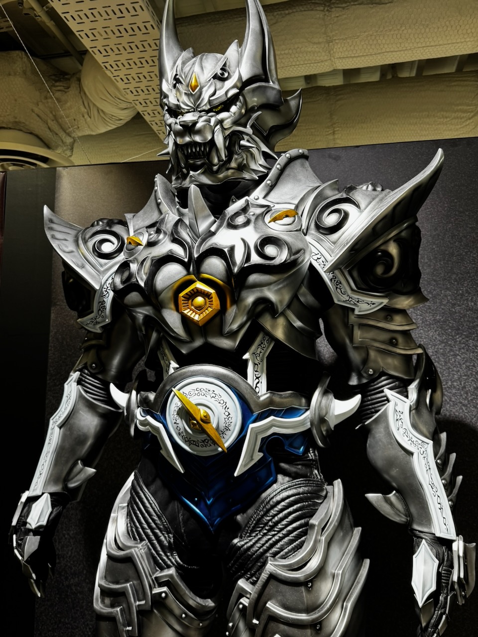 展示は、劇中使用していた衣装や、スーツ、プロップとか、ホラーの原型とか興味深い物がたくさんあり牙狼の世界を堪能しました。 実際使用されたスーツが展示されているとのことでしたが、会場で見たときは、スーツでか!!、本当にこれ着てアクションしたのって感じのボリューム感でした。