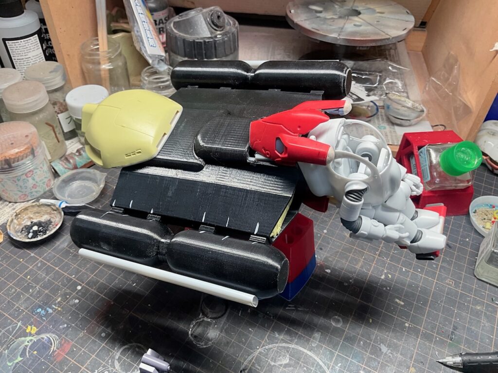 ジャンクのガンプラパーツと3Dプリンタで作成したボディをくっつけて何とかイメージの寄せていますが、PETGの表面処理や、塗装とかまだ先は長い感じです。 10月中に形が出来れば、何とかなりそうな気もするんですが….