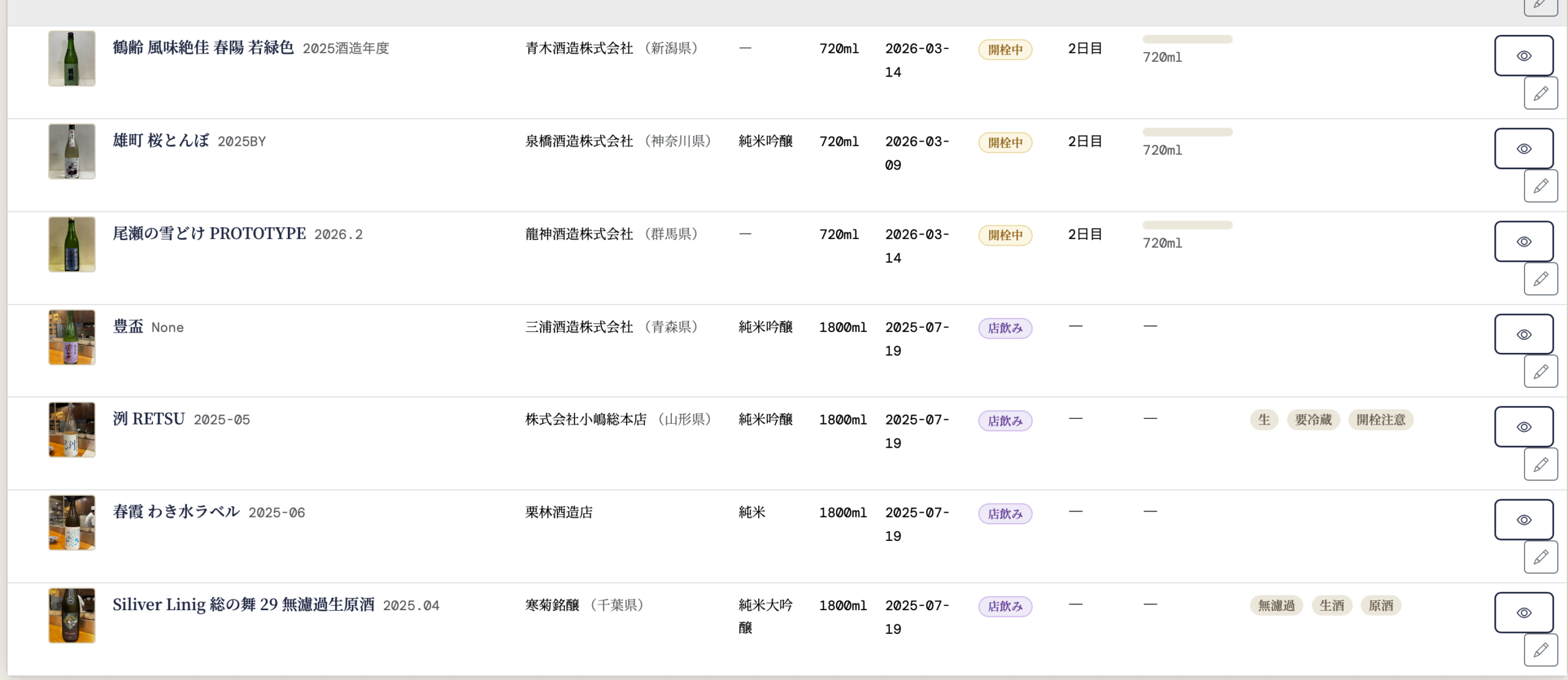 あとは使い勝手の改善です。在庫管理だけでしたが、お店で飲んだ記録も入れられるようDBスキーマとUIを修正。情報更新時の登録漏れを防ぐため、保存前にページ移動できないようにしたり、見た目の色調を見間違えにくく調整したりしました。